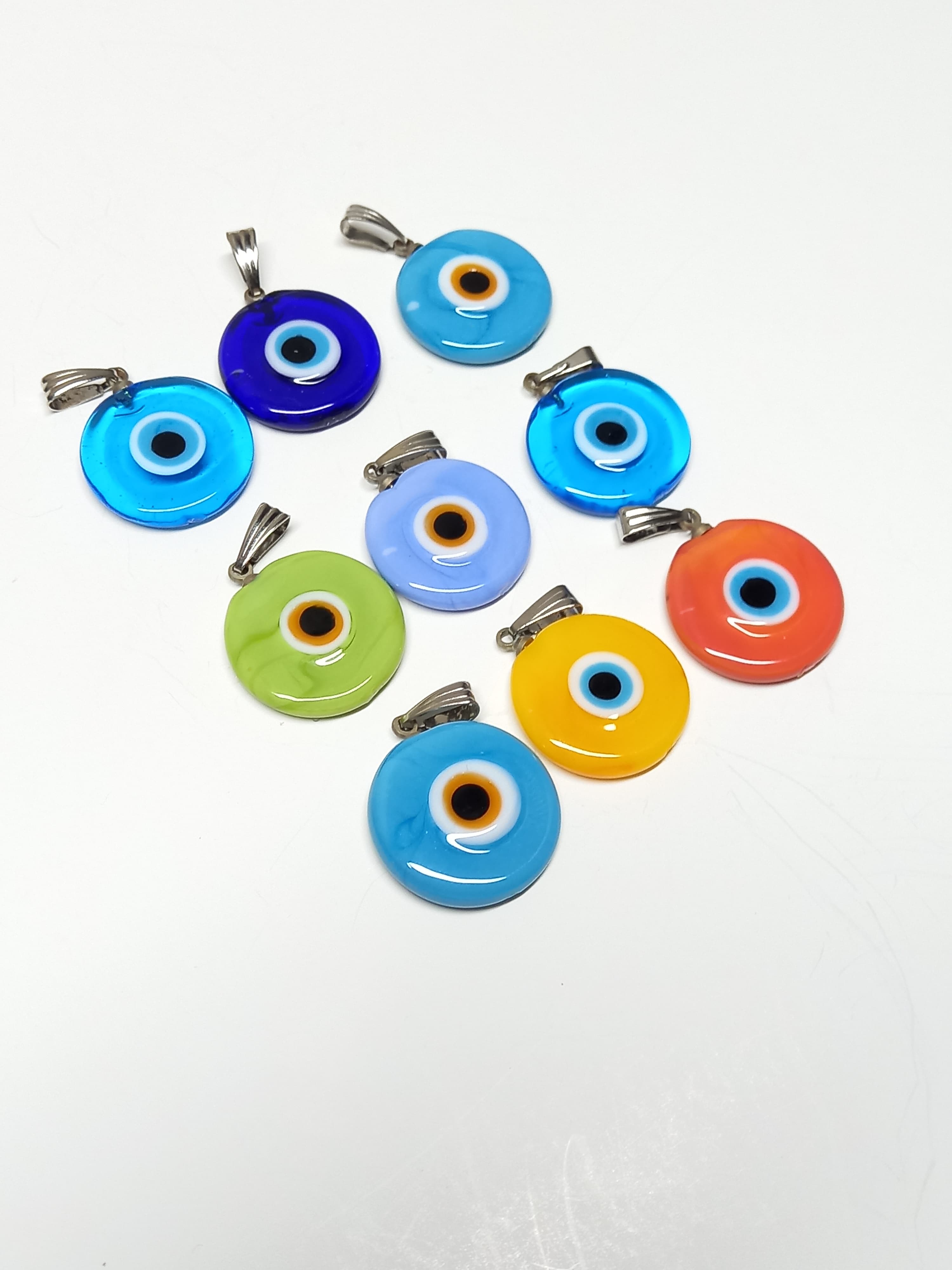 Yuvarlak gözlü pastel karışık renk kolye ucunu, günlük hayatınızda tişörtler ve bluzlarla kombinleyebilirsiniz. Aynı zamanda özel davetlerde şık bir elbisenin tamamlayıcısı olarak da dikkat çekici bir seçim olacaktır. Yaratıcı tarzı sayesinde farklı zincirlerle veya iplerle de şık bir görünüm elde edebilirsiniz.